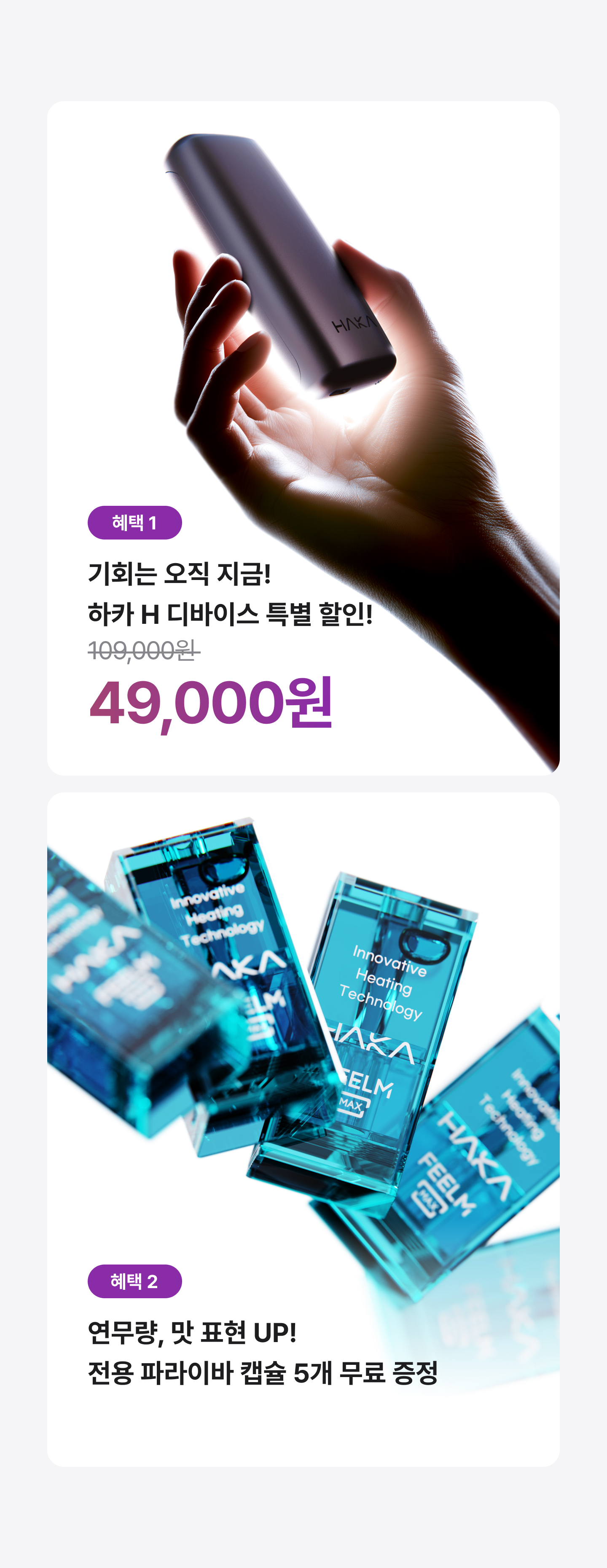 5. 하카 시그니처 듀오팩 : 듀오팩 2개입 제품 중 하나에서 초기 불량 증상이 나타나는 경우 전체 제품이 아닌 초기 불량 제품에 한정하여 교환이 진행되며, 교환 시 하카 시그니처 싱글팩으로 교환됩니다.